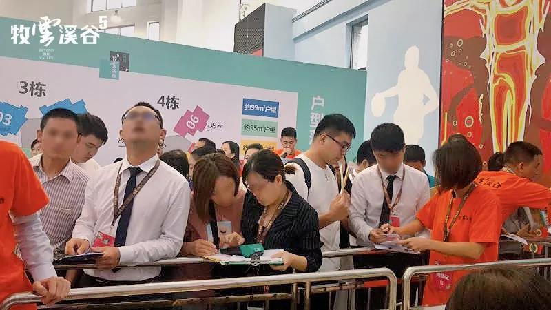 客戶們手拿選房資料在工作人員的安排下候場、排隊、簽到......