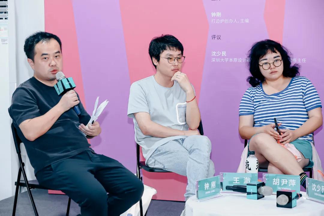 左起分別為:主持人鐘剛、獨(dú)立策展人王澈、藝術(shù)家胡尹萍、深圳大學(xué)本原設(shè)計(jì)研究中心公共藝術(shù)研究所主任沈少民、A4國際駐留藝術(shù)中心藝術(shù)總監(jiān)暨策展人蔡麗媛、鰲湖藝術(shù)村及鰲湖美術(shù)館發(fā)起人鄧春儒與王亭、坪山美術(shù)館副館長(zhǎng)盧楊麗、深圳地鐵美術(shù)館項(xiàng)目總策劃張曉飛