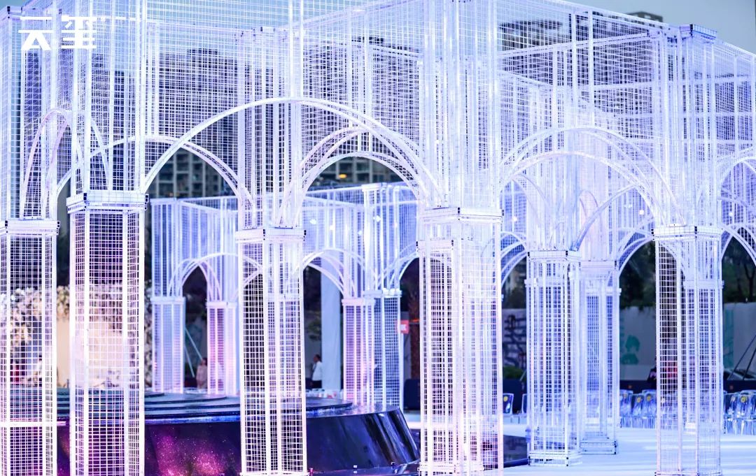 建筑空間不僅止于物理需求,更是人們對(duì)思維與情緒的棲身之所。于行業(yè)首例獨(dú)創(chuàng)“云廊”舞臺(tái)中見(jiàn)微知著,可窺得榕江?云璽精湛品質(zhì)之工;360度全景舞臺(tái)、垂直立體舞臺(tái)空間,實(shí)景還原榕江?云璽外立面特點(diǎn),重現(xiàn)建筑精湛工藝與高定品質(zhì);以鐵網(wǎng)進(jìn)行重構(gòu),縹緲輕盈,如置云端。