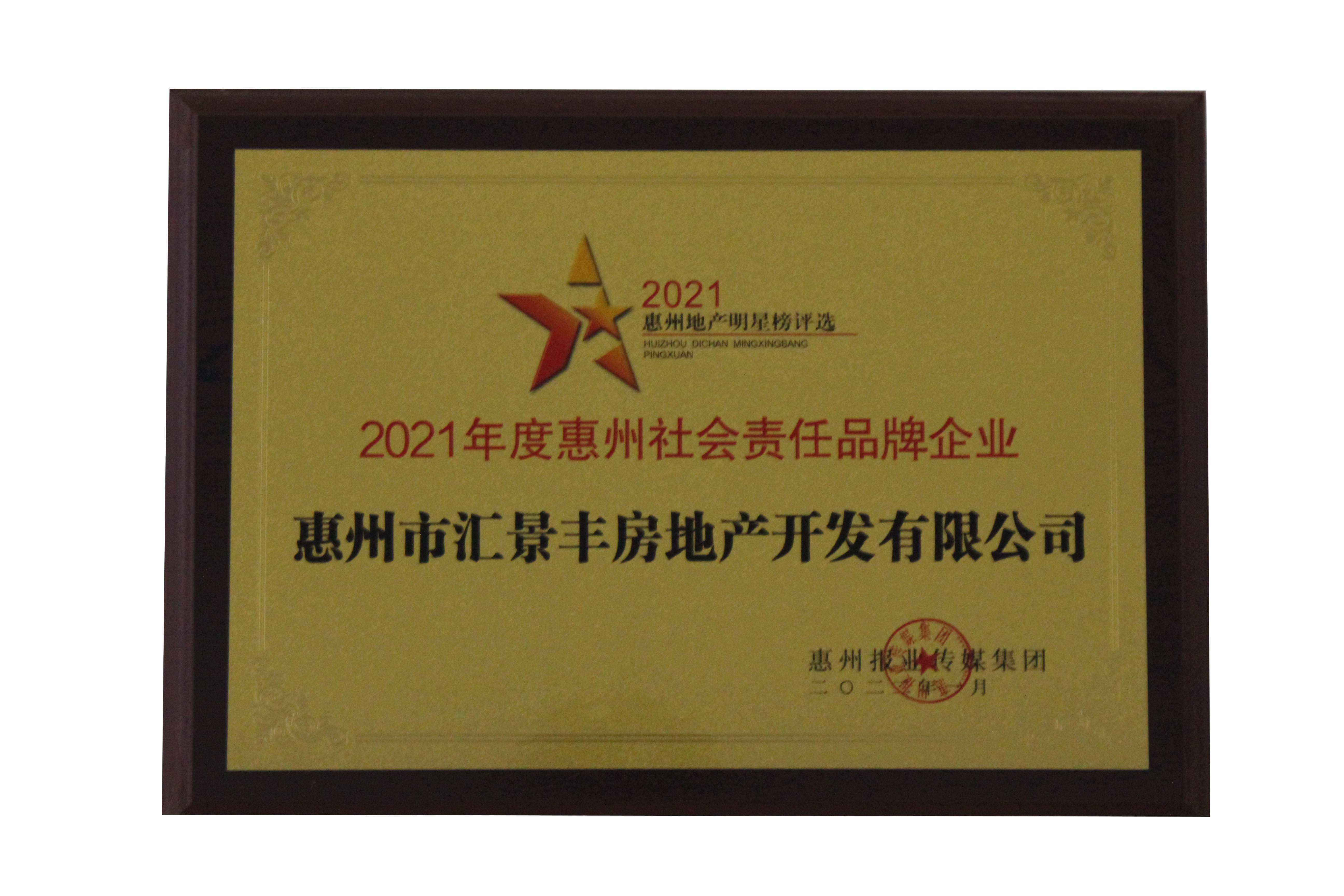 2021年度惠州社會責(zé)任品牌企業(yè)