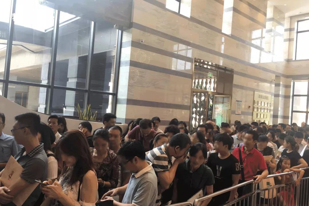 七月盛夏,驕陽似火,還未到簽到時間,售樓處已經(jīng)排起了長龍,現(xiàn)場人頭攢動,購房者絡(luò)繹不絕。
