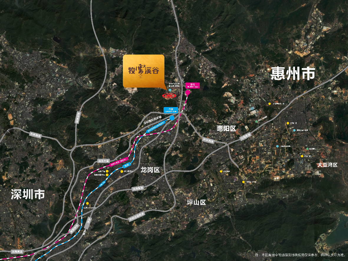 其中,正處于深惠城市交通核心地帶的牧云溪谷花園,直線距離地鐵3號線延長線六聯(lián)站(建設(shè)中)僅約1.5公里,同時緊鄰地鐵21號線吉坑站(規(guī)劃中)以及深惠快軌新圩站(規(guī)劃中),毗鄰龍崗大道、鹽龍大道、深圳外環(huán)高速等多條主干、高速道路,多維交通縱橫交錯,在地理上無縫接軌深圳及珠三角城市,生活提速向未來。