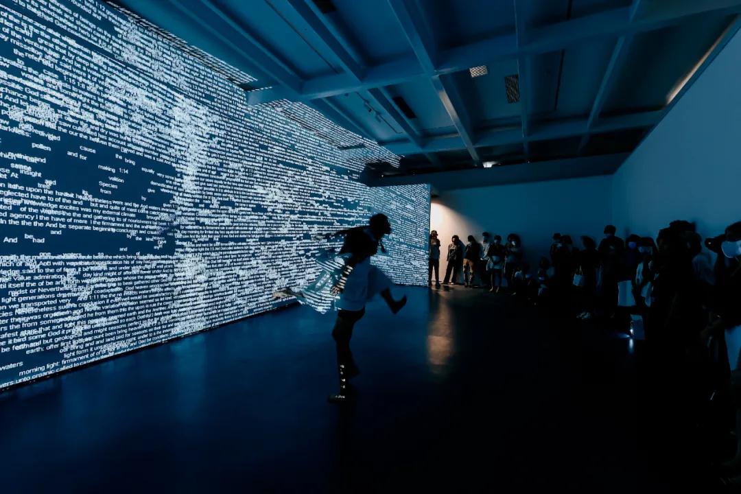 此次開幕式還在展廳中央與社區(qū)空間中為現(xiàn)場(chǎng)嘉賓呈現(xiàn)了由北京現(xiàn)代舞團(tuán)帶來的沉浸式現(xiàn)代舞表演,舞者的表演與展廳中的新媒體藝術(shù)作品和裝置藝術(shù)作品融為一體,讓觀眾身臨其境,改變過往單一視覺化認(rèn)知,以身體、感知、意識(shí)等多維感官的角度來理解藝術(shù)。